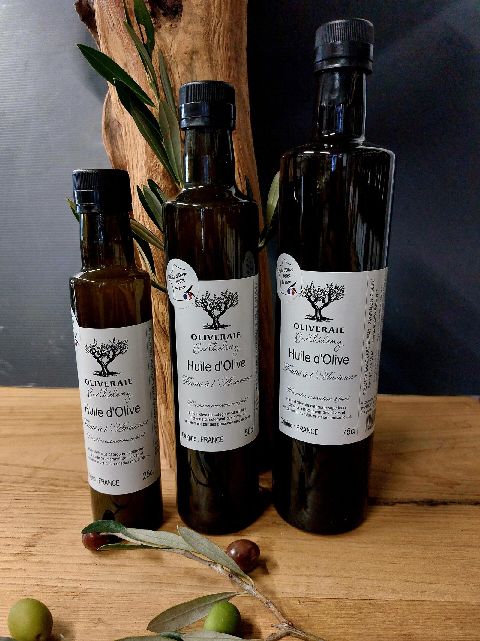 L’huile d’olive Fruité à l’Ancienne 25cl, 50cl, 75cl & 2L de l’Oliveraie Barthélémy est obtenue uniquement par procédés mécaniques pour préserver ses arômes intenses. Son goût fruité et légèrement boisé sublime salades, viandes et légumes. Idéale pour une cuisine saine et gourmande.